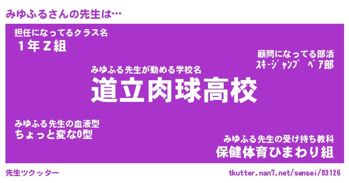 | ヘコむあだ名 | 『みゆふぇ~』『牛乳』『みゆ太郎』 |