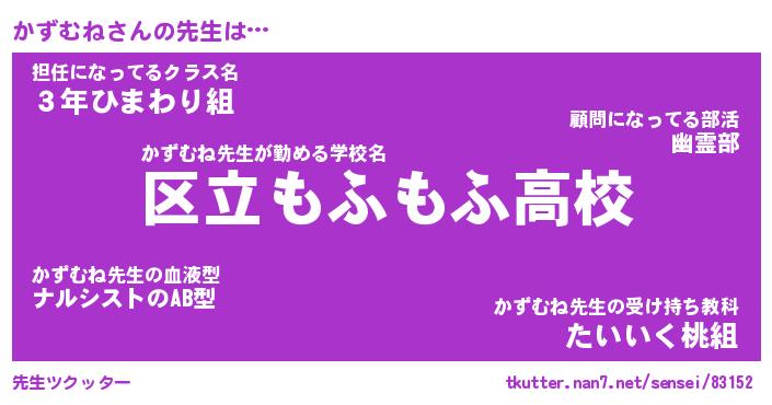 | 意味不明あだ名 | 『ペロリンかずむね』『永久保存かずむね』 |