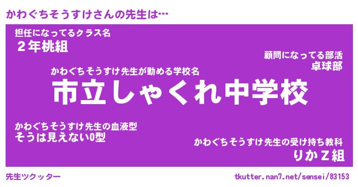 | 肩書あだ名 | 『かわぐちそうすけ御曹司』 |