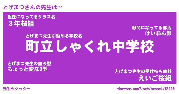 | 肩書あだ名 | 『とげまつ御曹司』『とげまつ国家主席』 |