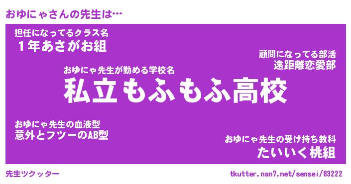 | 意味不明あだ名 | 『ペロリンおゆにゃ』『永久保存おゆにゃ』 |