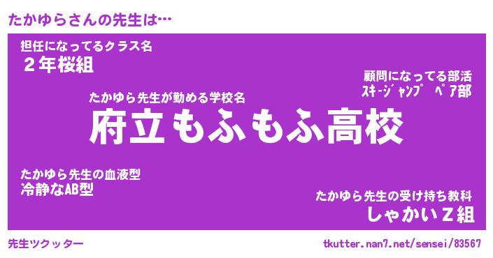 | ヒーロー風カッコイイあだ名 | 『スーパータカユラ』『魔戒騎士タカ』 |