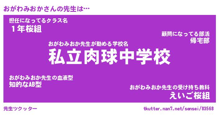 | ヘコむあだ名 | 『おがふぇ~』『なまこ酢』 |
