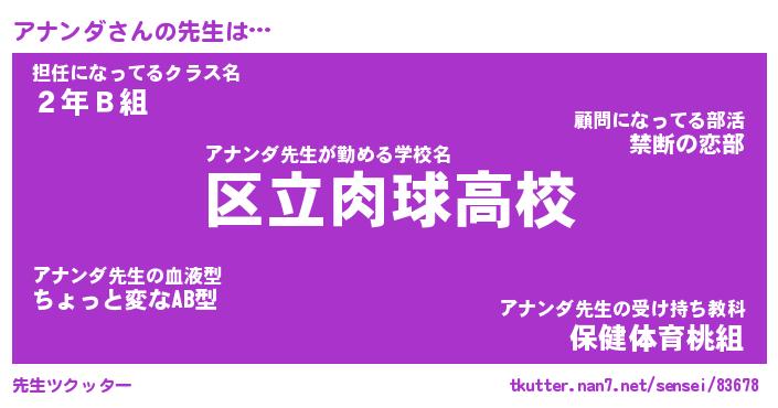 | 意味不明あだ名 | 『ペロリンアナンダ』『永久保存アナンダ』 |