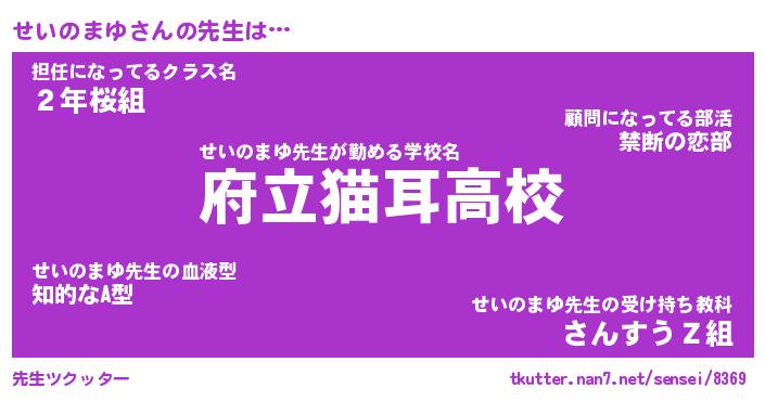 | ファンタジー風あだ名 | 『セイフェル』『エターナルセイノマユー』 |