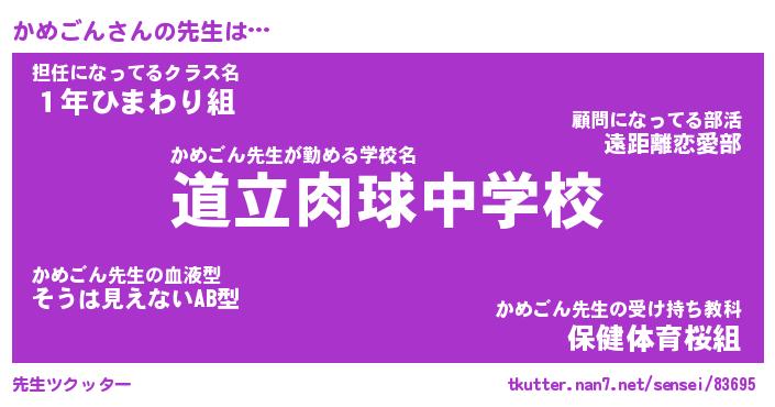 | 意味不明あだ名 | 『ペロリンかめごん』『永久保存かめごん』 |