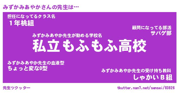 | ヘコむあだ名 | 『みずにゅー』『つくし』『みずを』 |