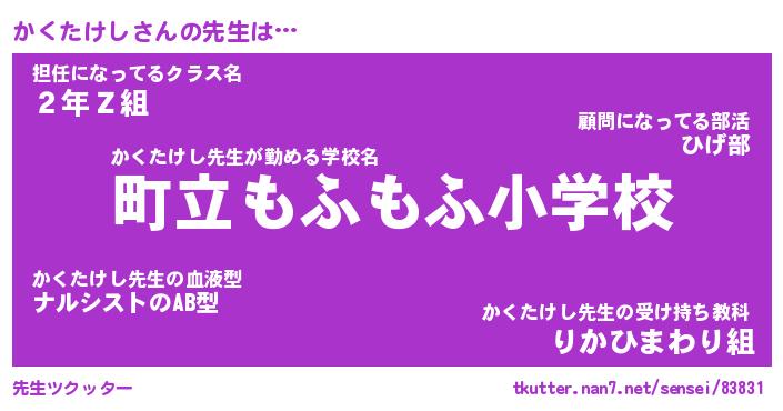 | ファンタジー風あだ名 | 『カクフェル』『エターナルカクタケシー』 |