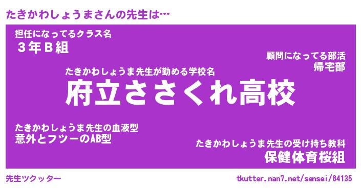 | ヘコむあだ名 | 『たきもー』『なまこ酢』『たきっぺ』 |