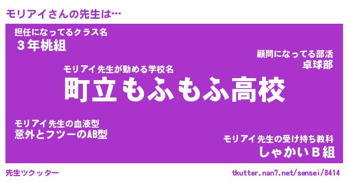 | 意味不明あだ名 | 『ペロリンモリアイ』『永久保存モリアイ』 |