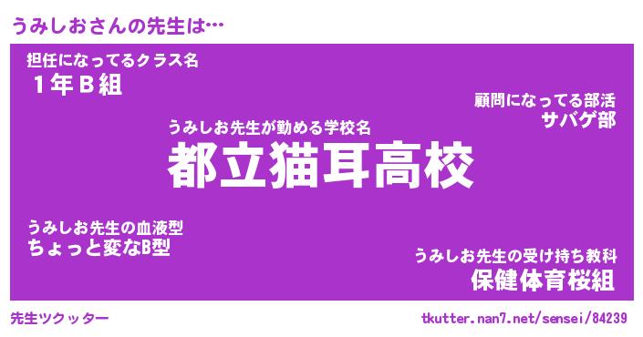 | ファンタジー風あだ名 | 『ウミフェル』『エターナルウミシオー』 |