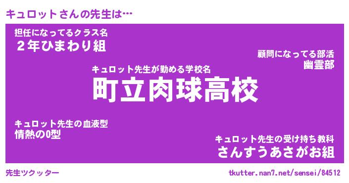 | ヒーロー風カッコイイあだ名 | 『スーパーキュロット』『幻影騎士キュ』 |