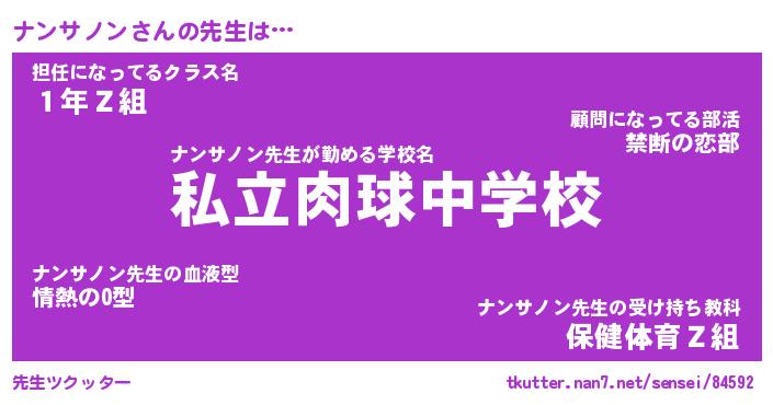 | 男性向けラノベタイトル風あだ名 | 『ナンサノンの憂鬱』 |