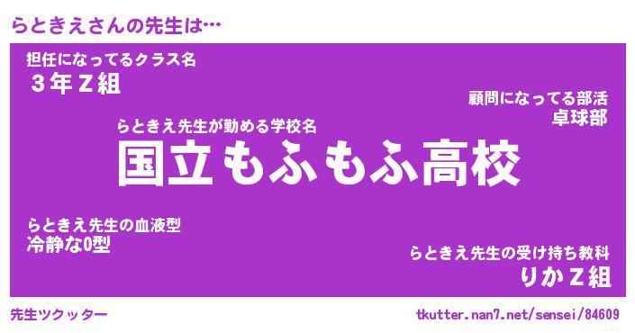 | 意味不明あだ名 | 『ペロリンらときえ』『永久保存らときえ』 |