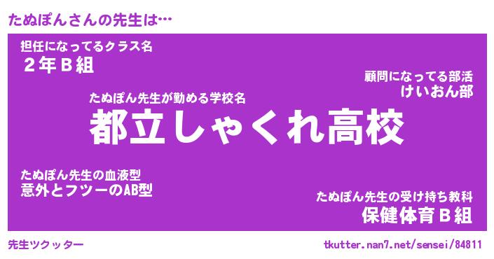 | ファンタジー風あだ名 | 『タヌフェル』『エターナルタヌポンー』 |