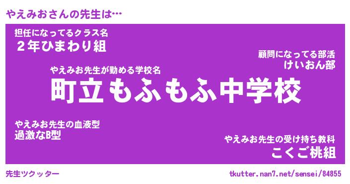 | 意味不明あだ名 | 『ペロリンやえみお』『永久保存やえみお』 |