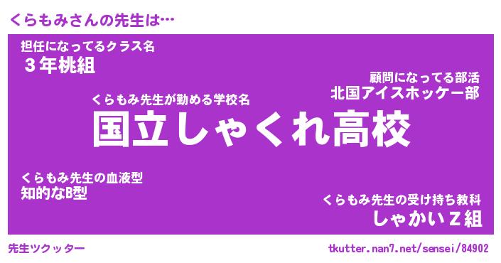 | 伝説のあだ名 | 『伝説のスナイパーくらもみ』 |