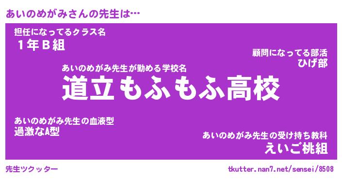 | 肩書あだ名 | 『あいのめがみ店長』『あいのめがみ先生』 |