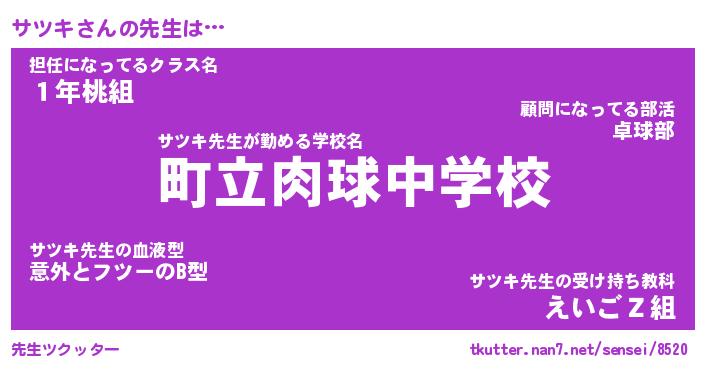 | 意味不明あだ名 | 『ペロリンサツキ』『サツキフォーエバー』 |