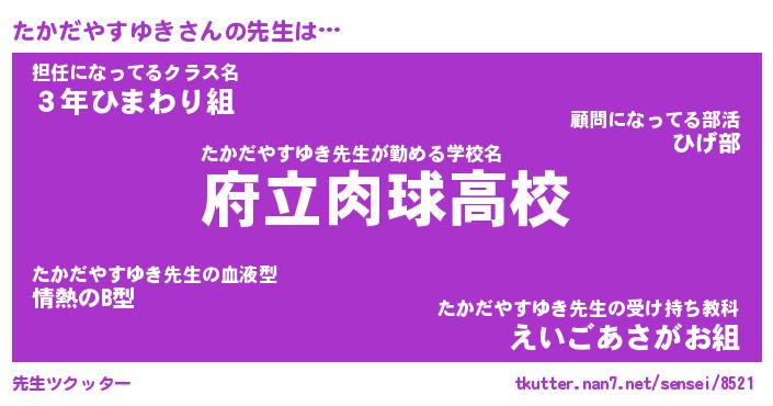| ポケモン風あだ名 | 『タカチュウ』『タカダダネ』 |