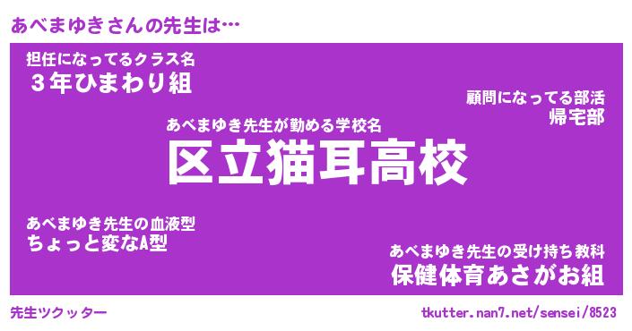 | ヒーロー風カッコイイあだ名 | 『スーパーアベマユキ』『天弓騎士アベ』 |