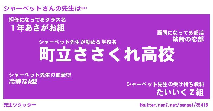 | ヒーロー風カッコイイあだ名 | 『スーパーシャーベット』『天弓騎士シャ』 |