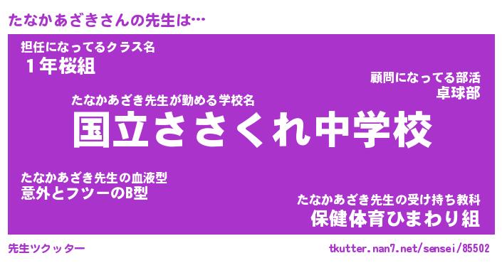 | ヒーロー風カッコイイあだ名 | 『スーパータナカアザキ』『炎刃騎士タナ』 |
