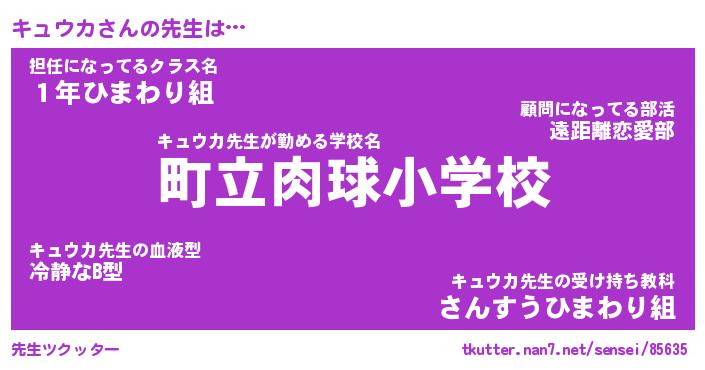| 意味不明あだ名 | 『ペロリンキュウカ』『永久保存キュウカ』 |