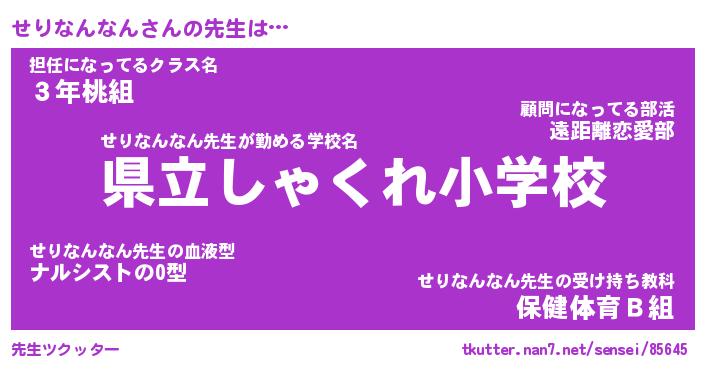 | 伝説のあだ名 | 『不死鳥のスナイパーせりなんなん』 |