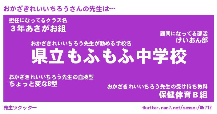 | 男性向けラノベタイトル風あだ名 | 『おかざきれいいちろうの憂鬱』 |