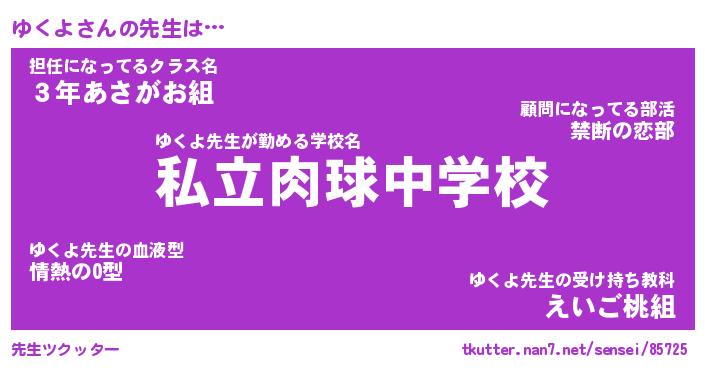 | 意味不明あだ名 | 『ペロリンゆくよ』『ゆくよフォーエバー』 |