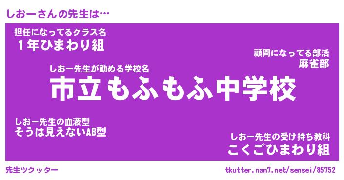 | ファンタジー風あだ名 | 『シオフェル』『エターナルシオーー』 |