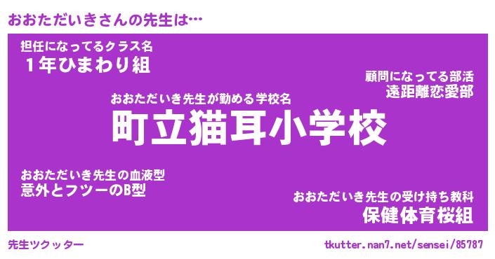 | 肩書あだ名 | 『おおただいき社長』『おおただいき担任』 |