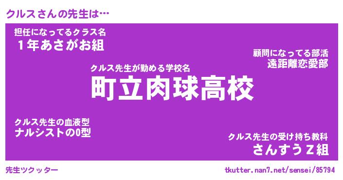 | ファンタジー風あだ名 | 『クルフェル』『エターナルクルスー』 |