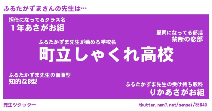 | 伝説のあだ名 | 『封印されしスナイパーふるたかずま』 |