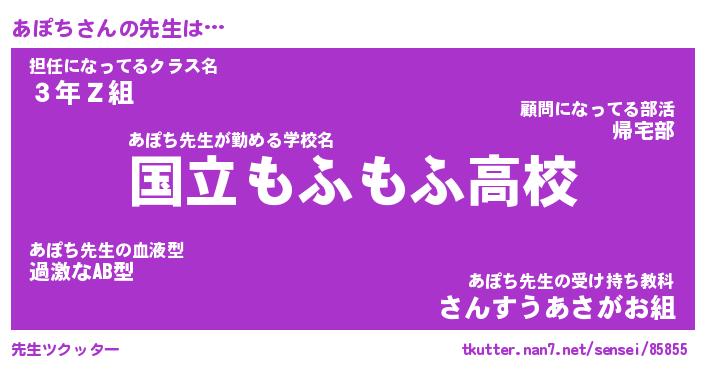 | ポケモン風あだ名 | 『アポチュウ』『アポチダネ』 |