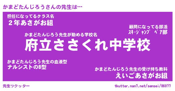 | 伝説のあだ名 | 『封印されしスナイパーかまどたんじろう』 |
