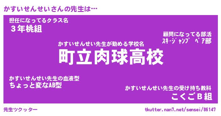 | ヘコむあだ名 | 『かすふぇ~』『なまこ酢』『かすお』 |