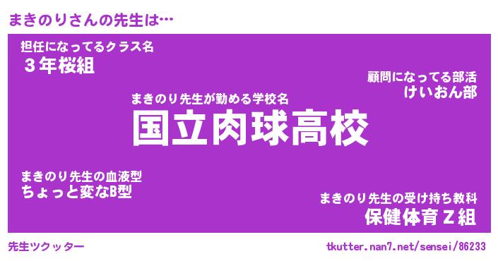 | ヘコむあだ名 | 『まきふぇ~』『酢こんぶ』『まきを』 |