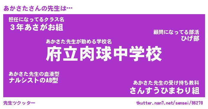 | 意味不明あだ名 | 『ペロリンあかさた』『永久保存あかさた』 |