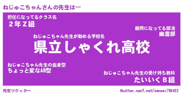 | 伝説のあだ名 | 『不死鳥のスナイパーねじゅこちゃん』 |