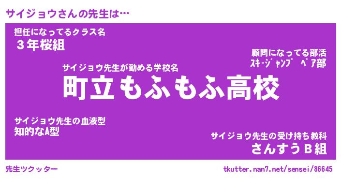 | ファンタジー風あだ名 | 『サイフェル』『エターナルサイジョウー』 |