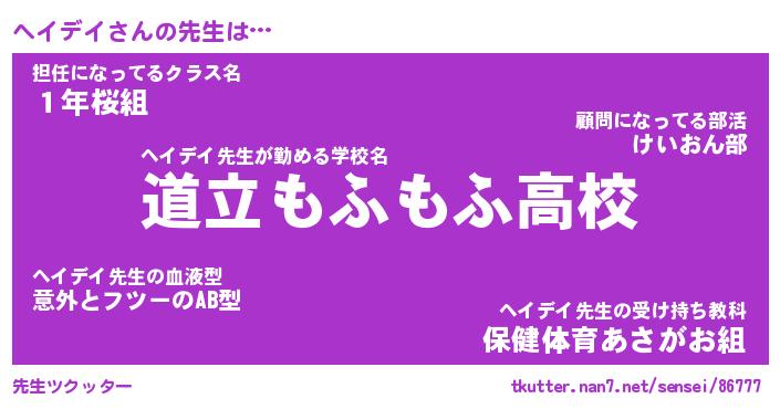 | ファンタジー風あだ名 | 『ヘイフェル』『エターナルヘイデイー』 |