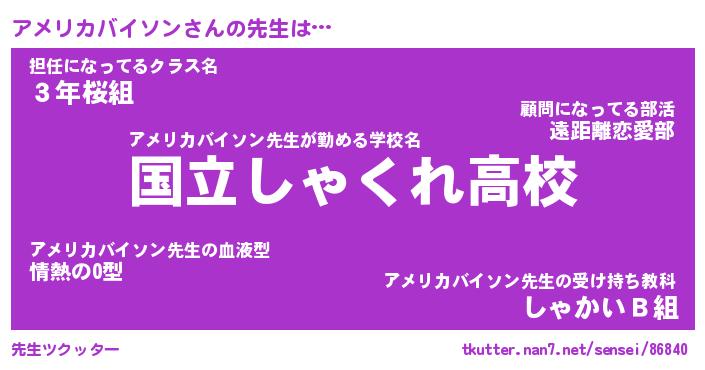 | 男性向けラノベタイトル風あだ名 | 『アメリカバイソンの憂鬱』 |