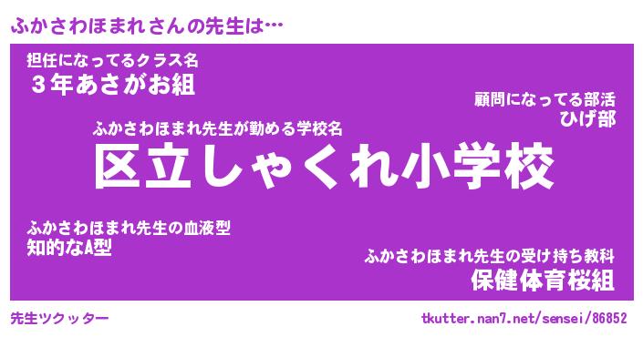 | 伝説のあだ名 | 『封印されしスナイパーふかさわほまれ』 |