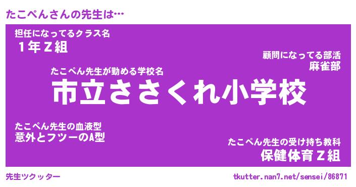 | 意味不明あだ名 | 『ペロリンたこぺん』『永久保存たこぺん』 |