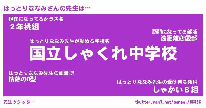 | 胡散臭い通販商品みたいなあだ名 | 『必ず成功する霊験あらたかなお札…その名も「はっとりななみ」』 |