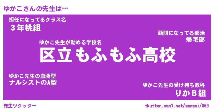 | ファンタジー風あだ名 | 『ユカフェル』『エターナルユカコー』 |