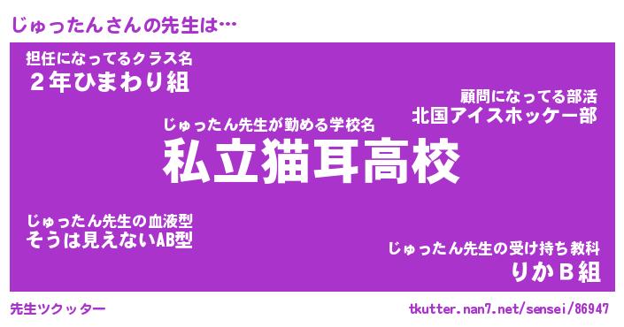 | ヘコむあだ名 | 『じゅにー』『なまこ酢』『じゅお』 |