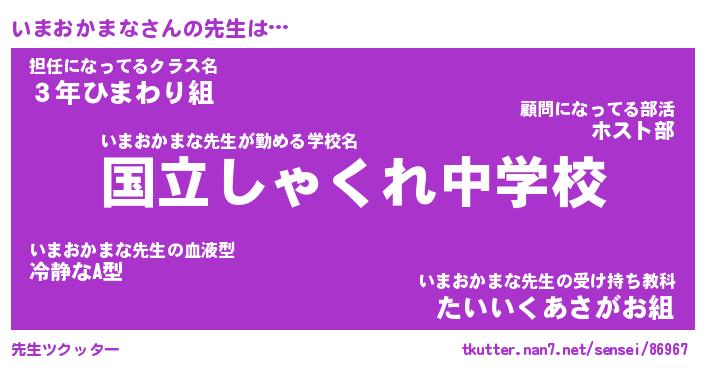 | ポケモン風あだ名 | 『イマチュウ』『イマオダネ』 |